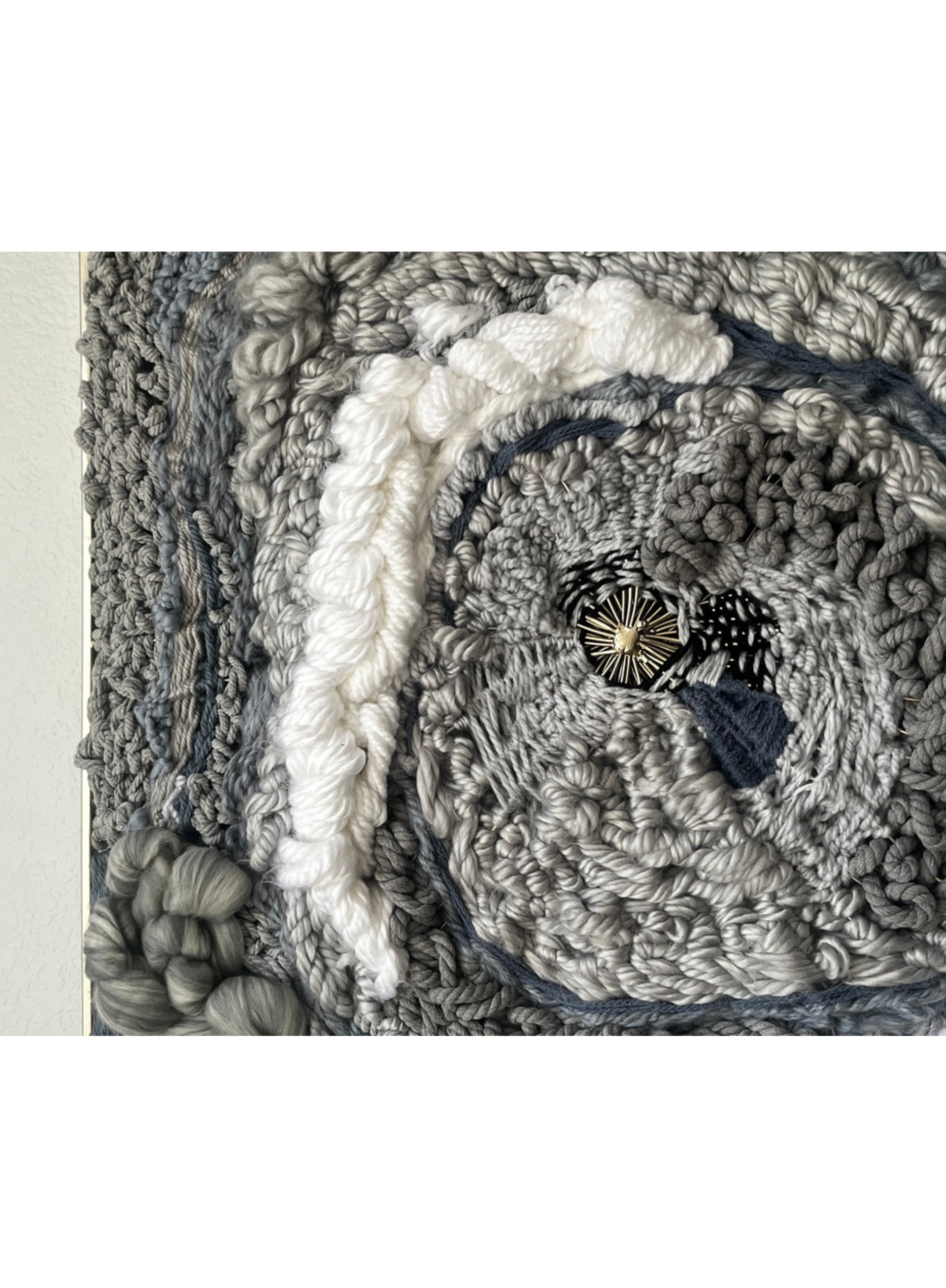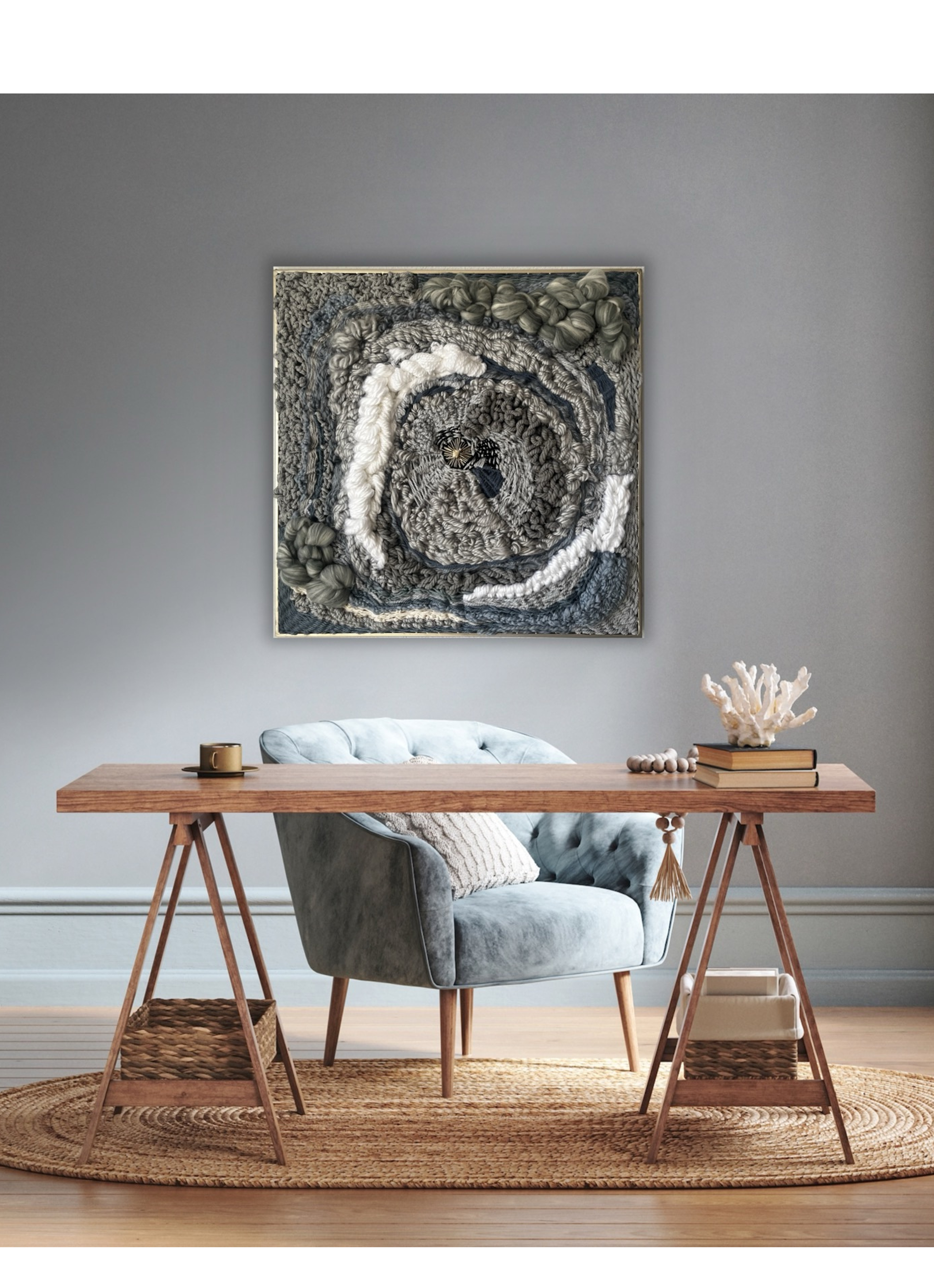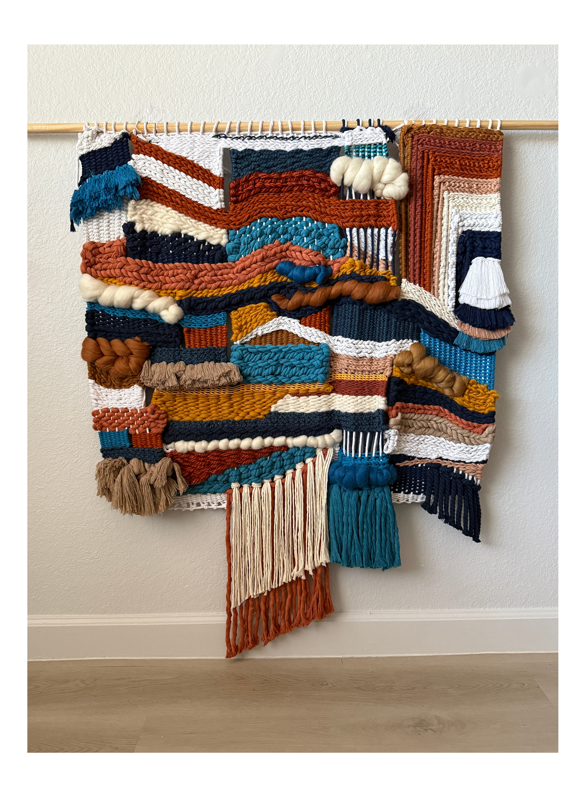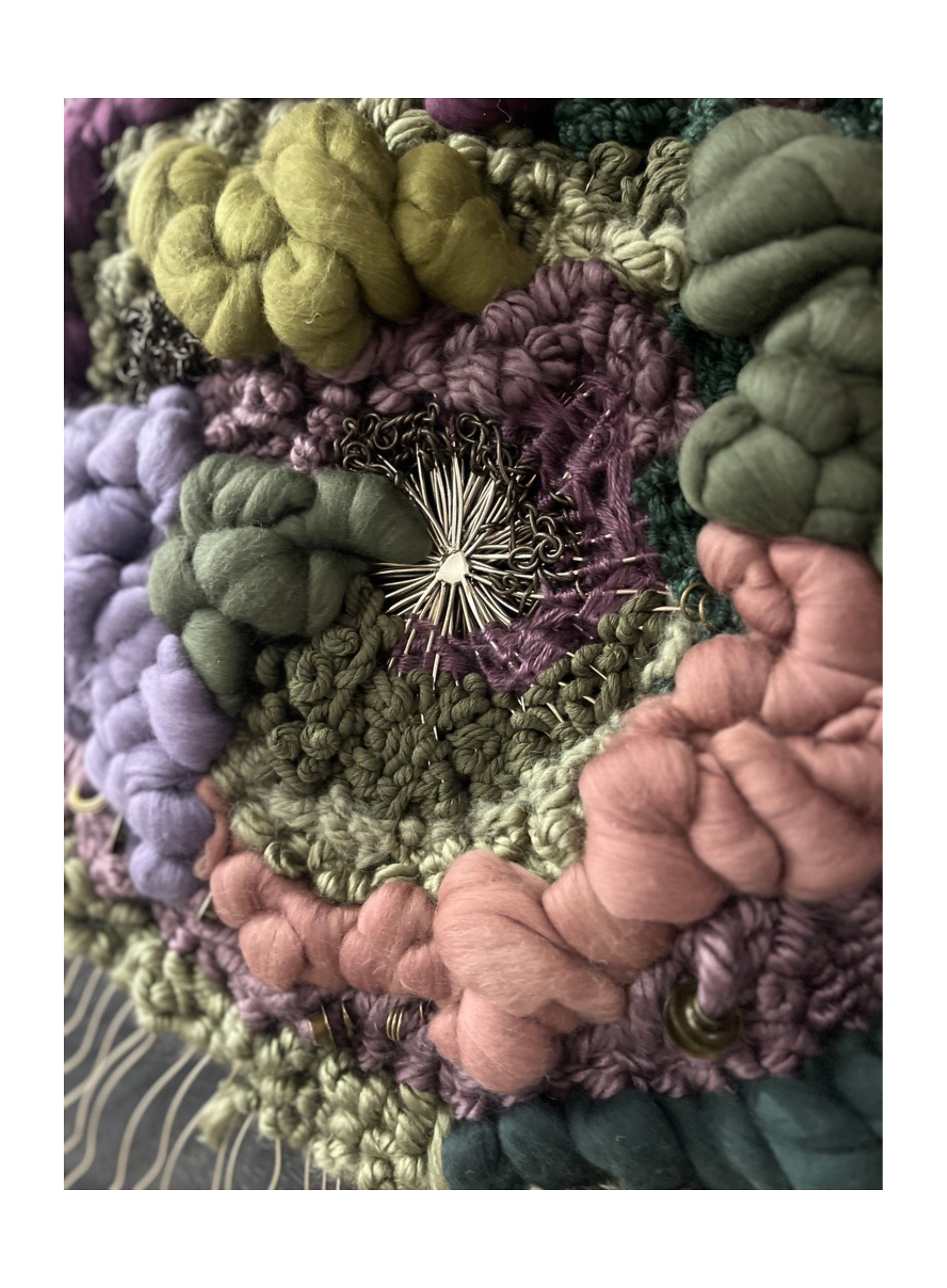 " This is my meditation between earth and memory. Its surface reads like a landscape - formed by time, marked by human gesture, pain, and resisting silence. A terrain of fiber and shadow, carrying both story and stillness. "