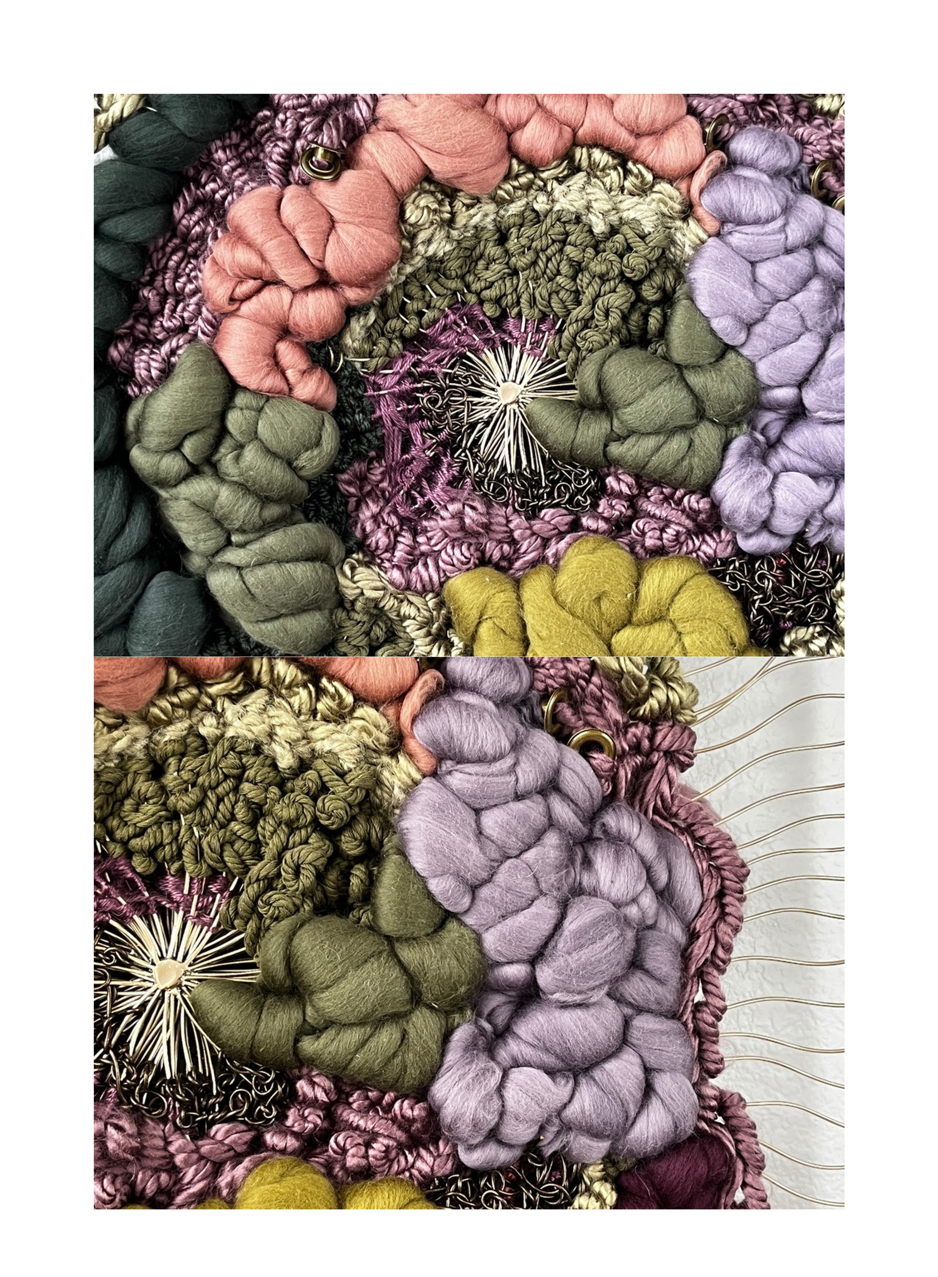 Wool, cotton rope, yarn, leather, fabric, and metal
