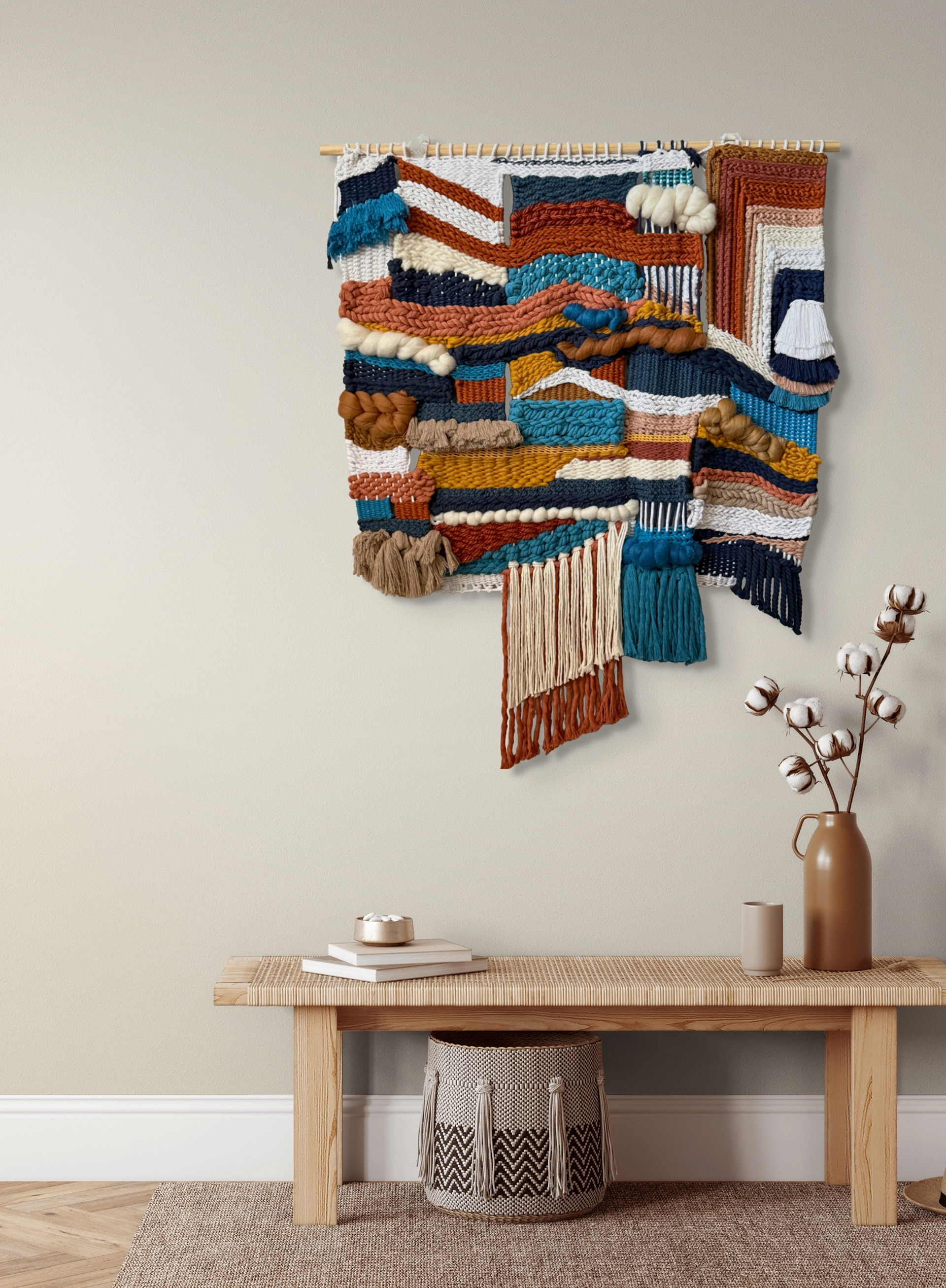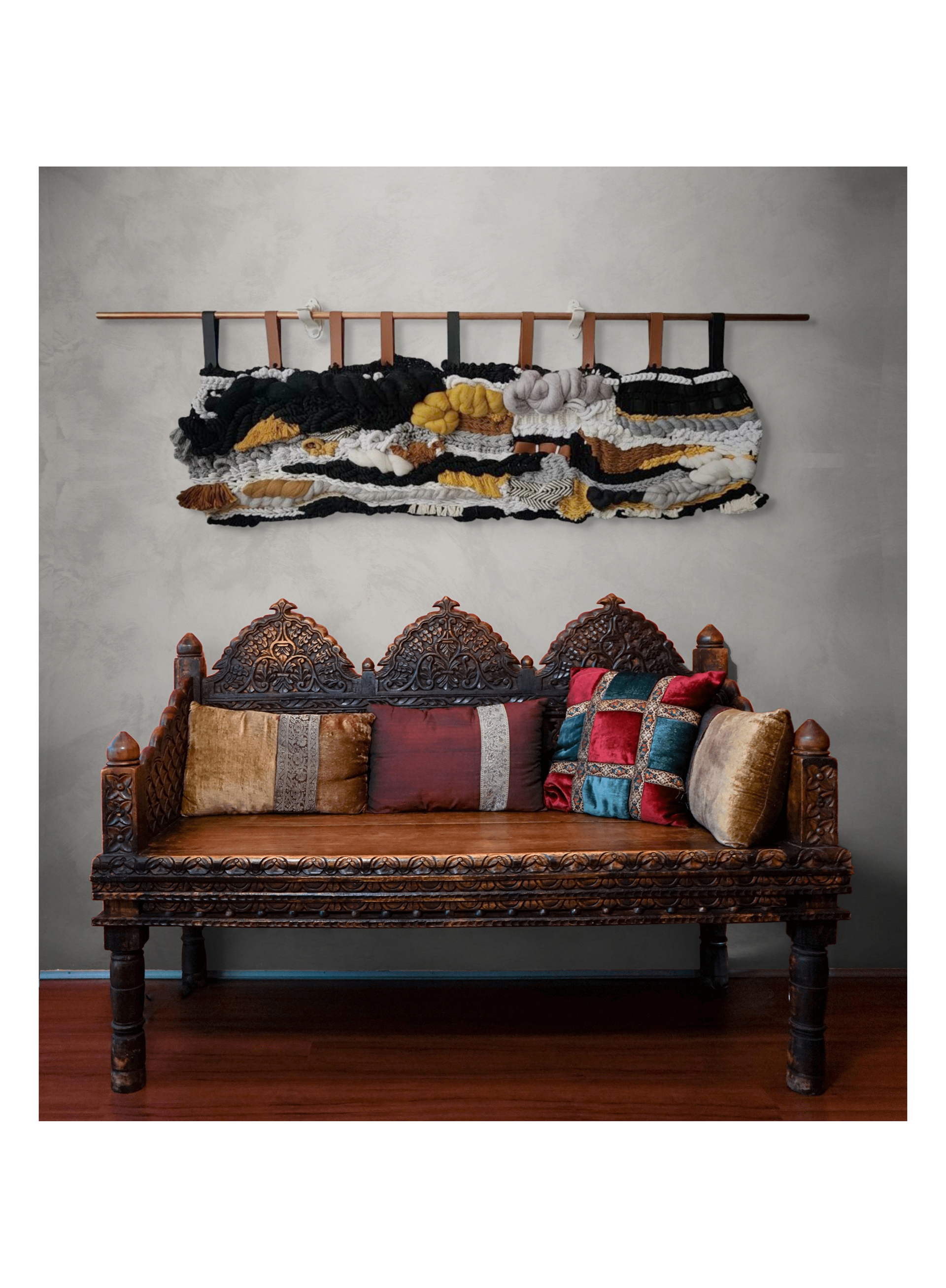 Wool, cotton rope, yarn, and leather